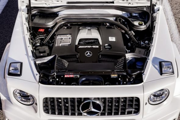 In the new G 500 (fuel consumption, combined: 12.1-11.5 l/100 km; combined CO2 emissions: 276-263 g/km)1 a high-performance 4.0-litre V8 petrol engine ensures powerful propulsion. The new biturbo produces an output of 310 kW (422 hp) and a maximum torque of 610 Nm at 2000 to 4750 rpm.