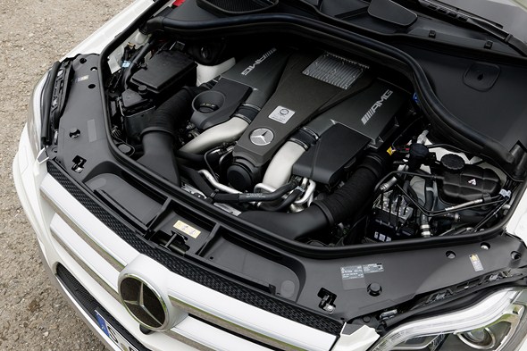 The AMG M 157 eight-cylinder engine features an innovative, high-tech power package including spray-guided direct petrol injection, piezo injectors, biturbo charging, air/water intercooling, all-aluminium crankcase, a four-valve-per-cylinder design with variable camshaft adjustment, plus alternator management and the ECO start/stop system.