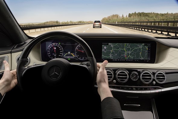 Thanks to enhanced camera and radar systems, the new S-Class has an even better view of the surrounding traffic: In addition, for the first time it makes use of map and navigation data to calculate driving behaviour.