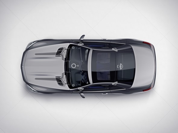 The atmosphere is like that of a concert hall, even when the roof is open, thanks to the Frontbass system, which had its world premiere in the SL in 2012.
