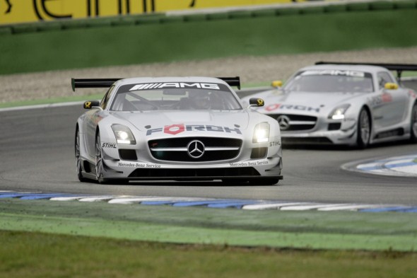 Nürburgring – At the wheel of a Mercedes-Benz SLS AMG GT3 raced by the private team Black Falcon, Thomas Jäger (33) and Christopher Haase (23) were victorious in the ninth race of the VLN long-distance championship on Saturday at the Nürburgring. Bernd Schneider (46) and Christian Mamerow (25), having started from pole position in a gull-wing model fielded by Mamerow-Racing, were forced to drop out on the fifth lap after a collision while lying second. The 4-hour race was the second test outing for the Mercedes-Benz SLS AMG GT3.