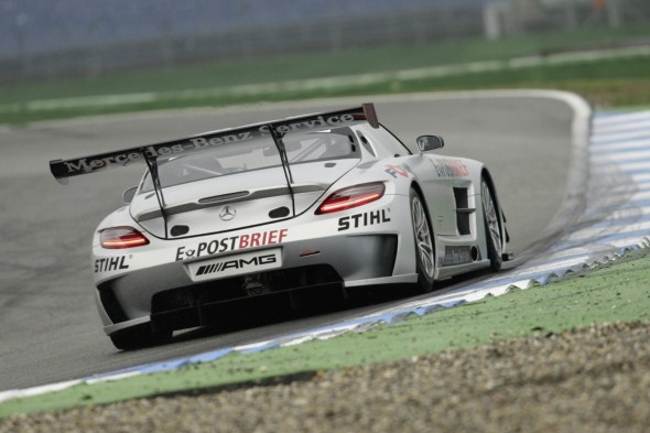 Affalterbach – The Mercedes-Benz SLS AMG GT3 will once again be lining up on the starting grid at the next two races of the VLN Nürburgring endurance championship. The four-hour races on 16 and 30 October 2010 will prove helpful with clocking up additional test miles as well as the scheduled further development of the gullwing model.At the first race in which it took part on 25 September 2010, the SLS AMG GT3 was able to put its potential to the test. Despite an accident in the first lap and a necessary break for repairs, the gullwing was still easily able to hold its own among the field of GT3 vehicles.
