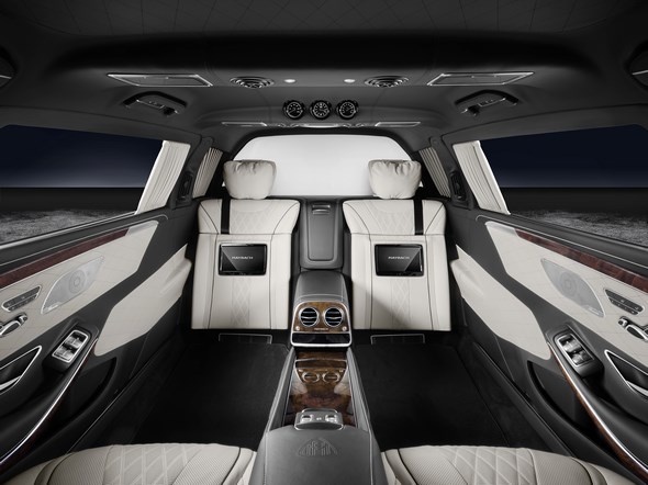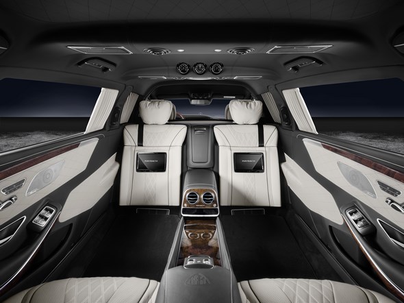 The two first-class travellers in the rear enjoy the largest legroom of any car in the segment, as well as 60 millimetres more headroom than in a Mercedes-Maybach S-Class.