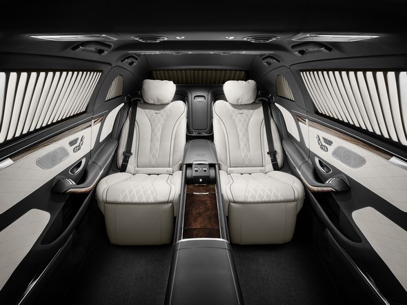 As is typical for a Pullman, the four passengers can sit facing each other in the compartment with an electrically-operated partition wall. The price of the non-armoured version starts at around half a million euro.