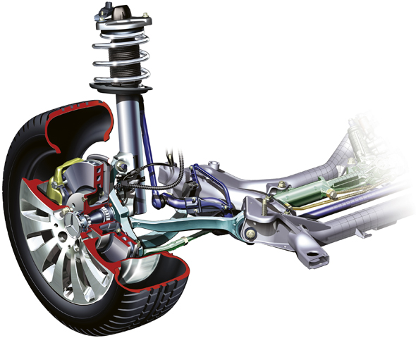 As well as precise wheel location, the primary benefit of this new design is that it compensates vibrations resulting from tire imbalance or brake force fluctuations more effectively than a rigid wishbone suspension.