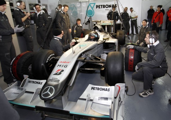 Following his first experience of the new 2010 car on Monday afternoon, Michael spent the early part of his first full day working on the set-up and developing the balance of the car. For the afternoon, the focus switched to long runs before a hydraulic problem on the car brought the day to a close one hour early.