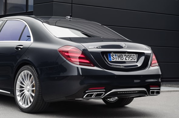 The powerful rear end of the S 63 4MATIC+ and S 65 is formed by the updated rear apron with diffuser insert and the redesigned model-specific dual tailpipes of the AMG sport exhaust system. Additional stand-out features are the many high-gloss chrome design elements at the front, side and rear, which develop their radiant effect especially in combination with dark paint finishes.